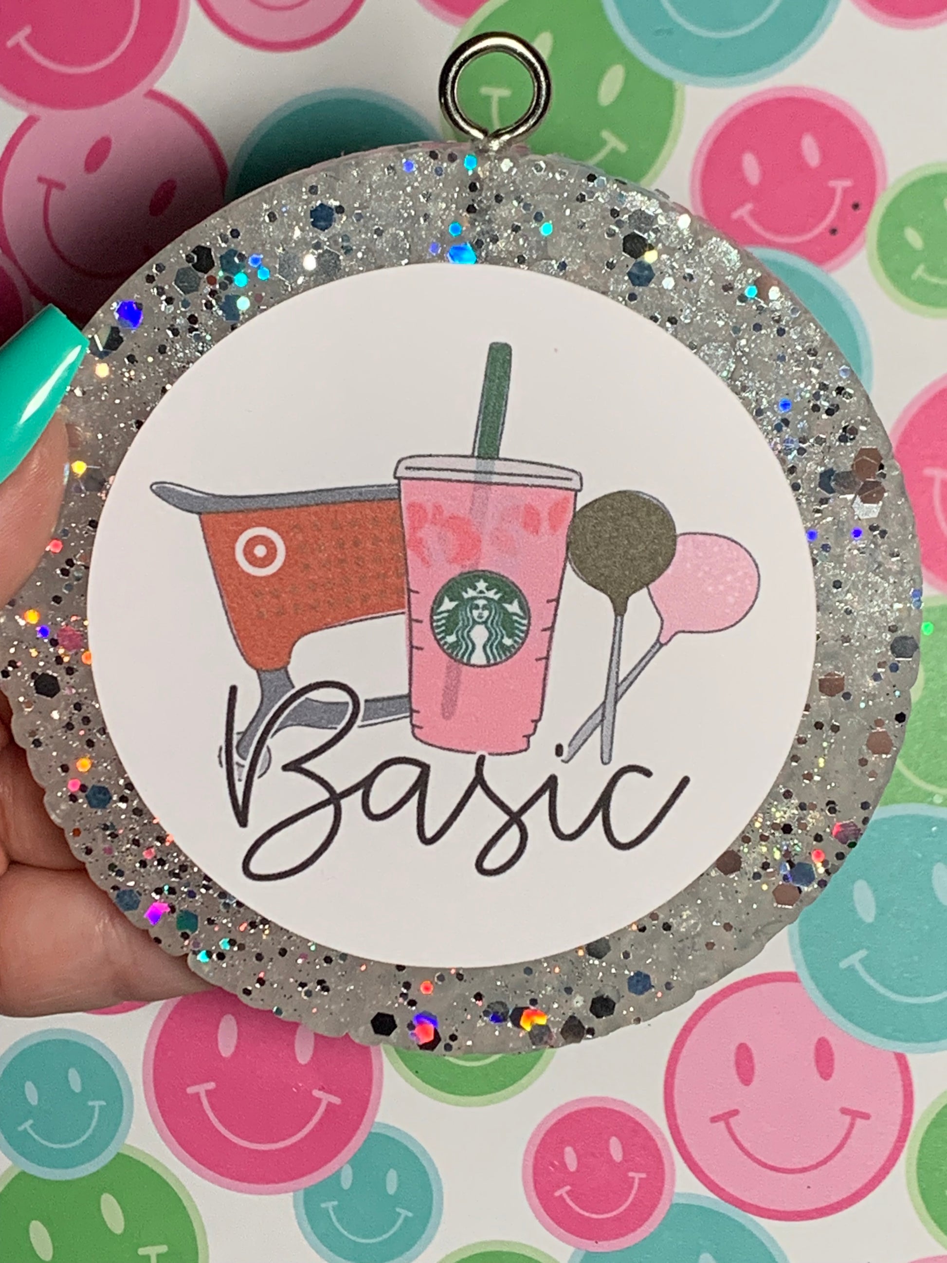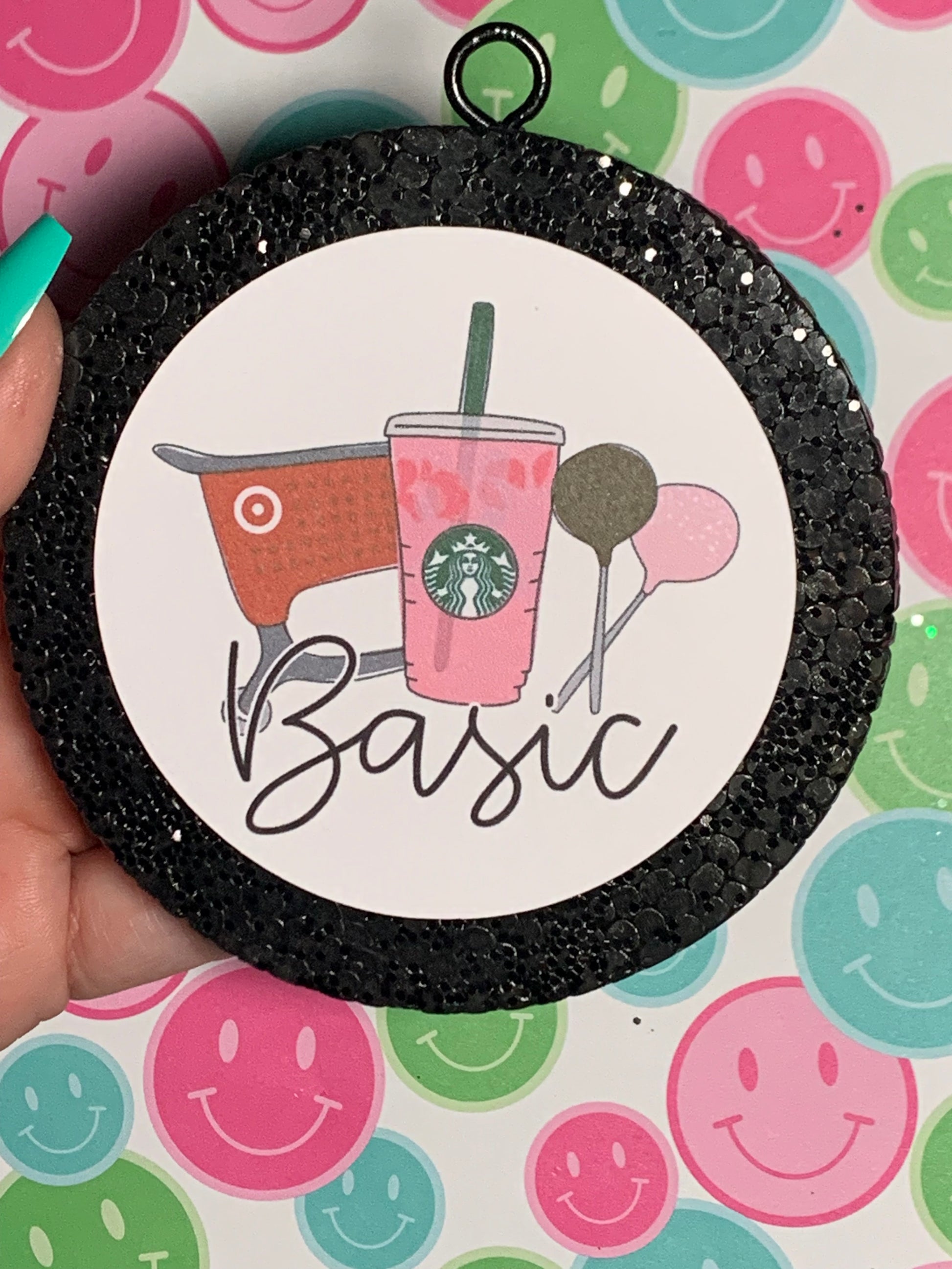 Hang freshie directly from rearview mirror. Avoid laying on surfaces at it contains oils that could cause damage.